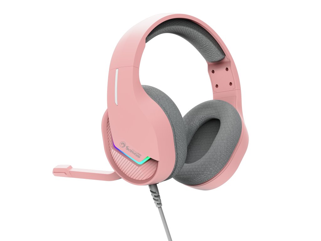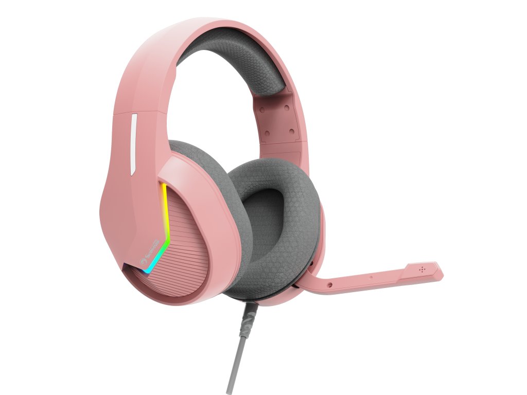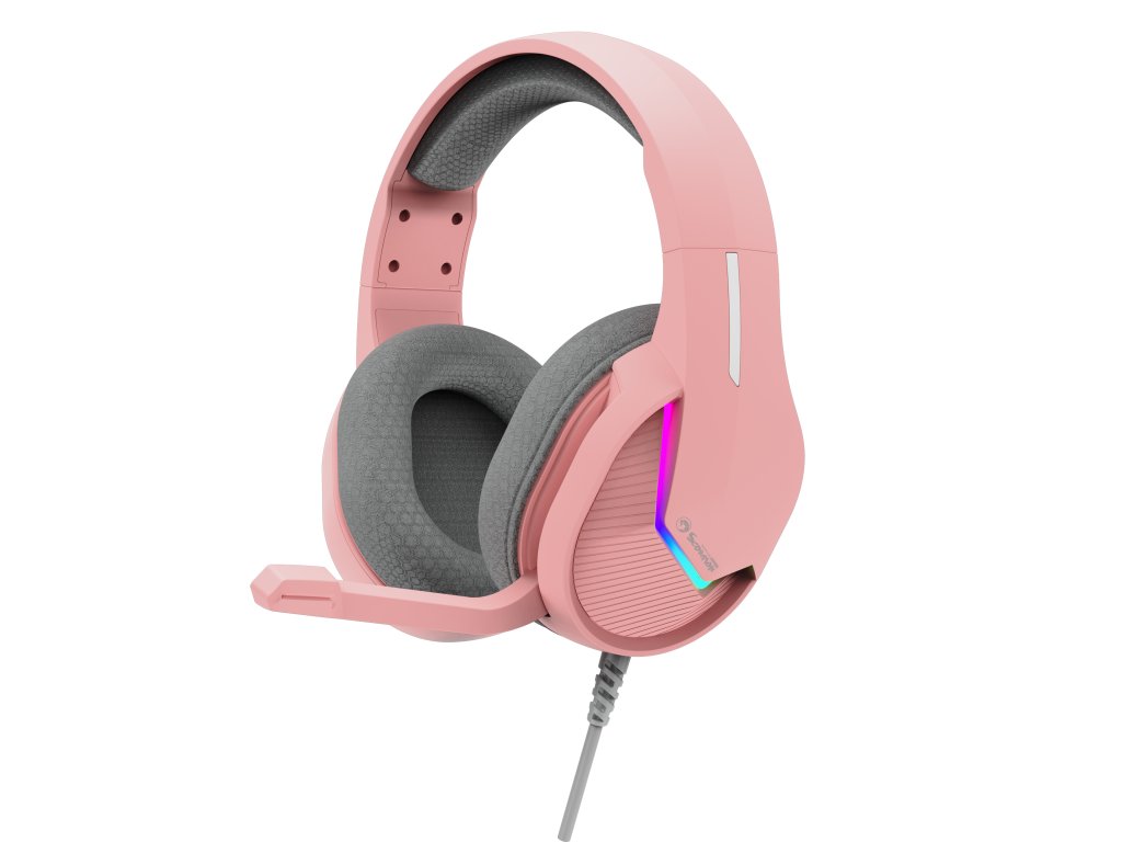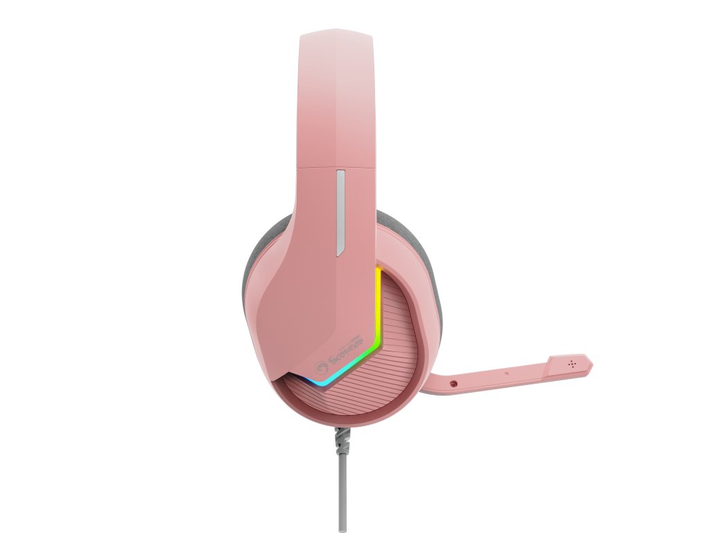 Marvo TACTIC 40, sluchátka s mikrofonem, drátová, růžová, 2.0, podsvícené, USB
