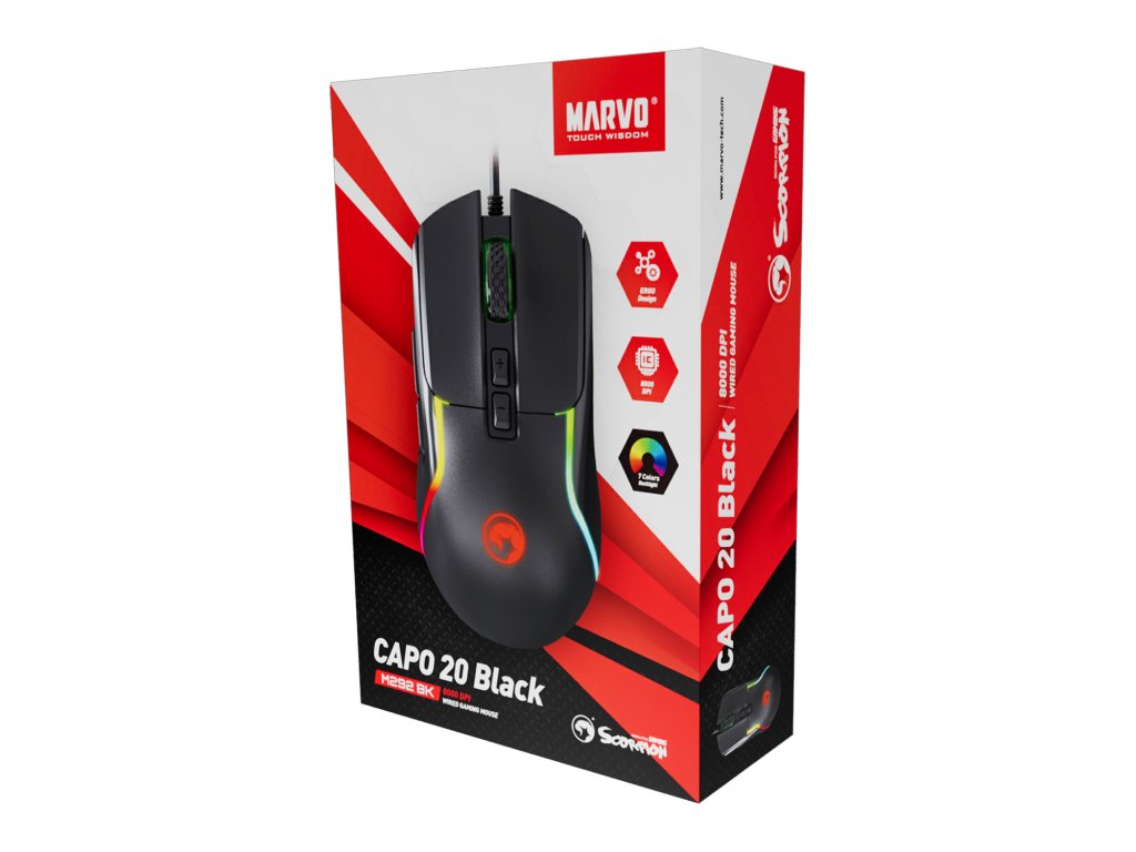 Myš drátová, Marvo CAPO 20, černá, optika, 8000DPI