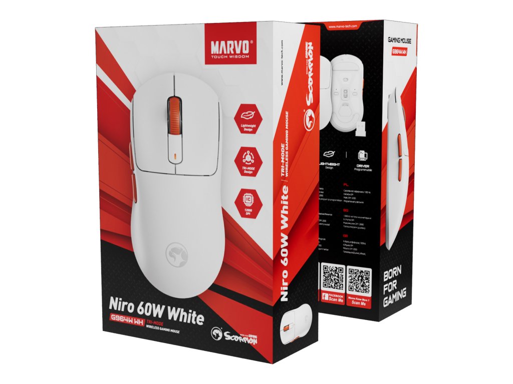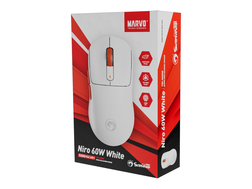 Myš Marvo NIRO 60, bílá, optika, 12000DPI, Tri-Mode