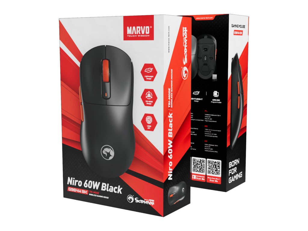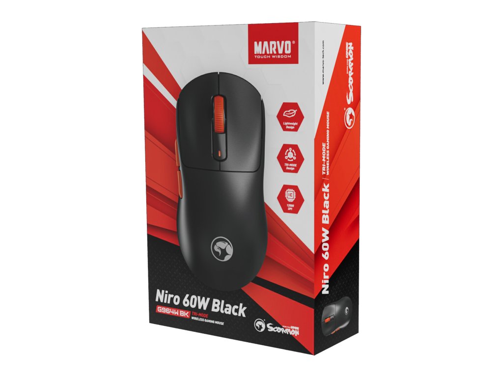 Myš Marvo NIRO 60, černá, optika, 12000DPI, Tri-Mode